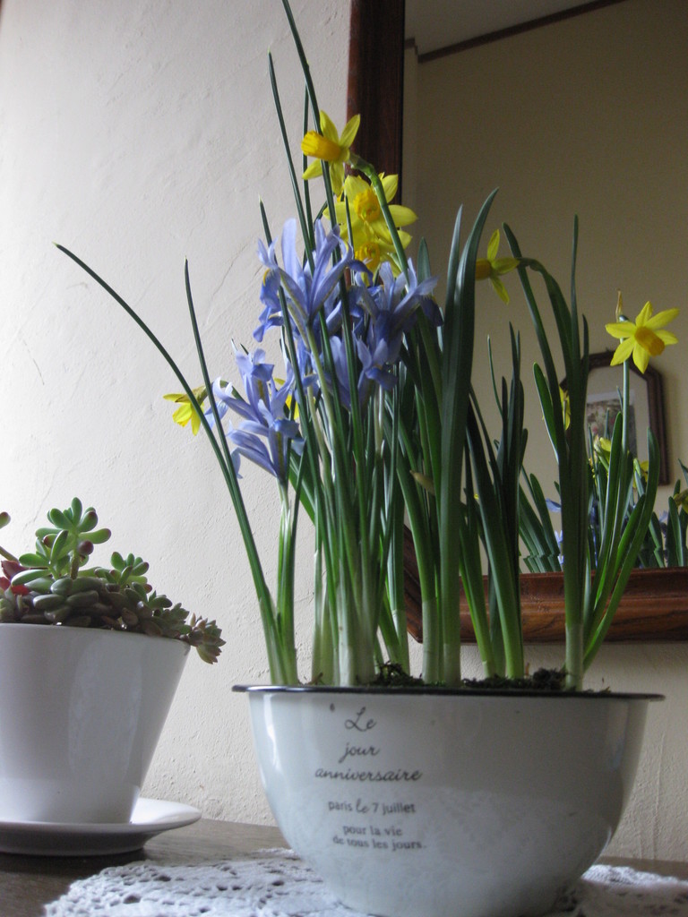 地植えの球根を寄せ植えにしたため少しまのびしています
