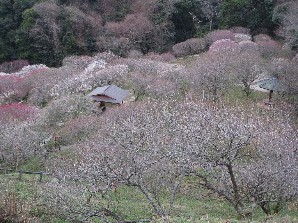 上からみる梅林、素敵ですね~♪ ホント、同じ画角で満開の時を見てみたいです。