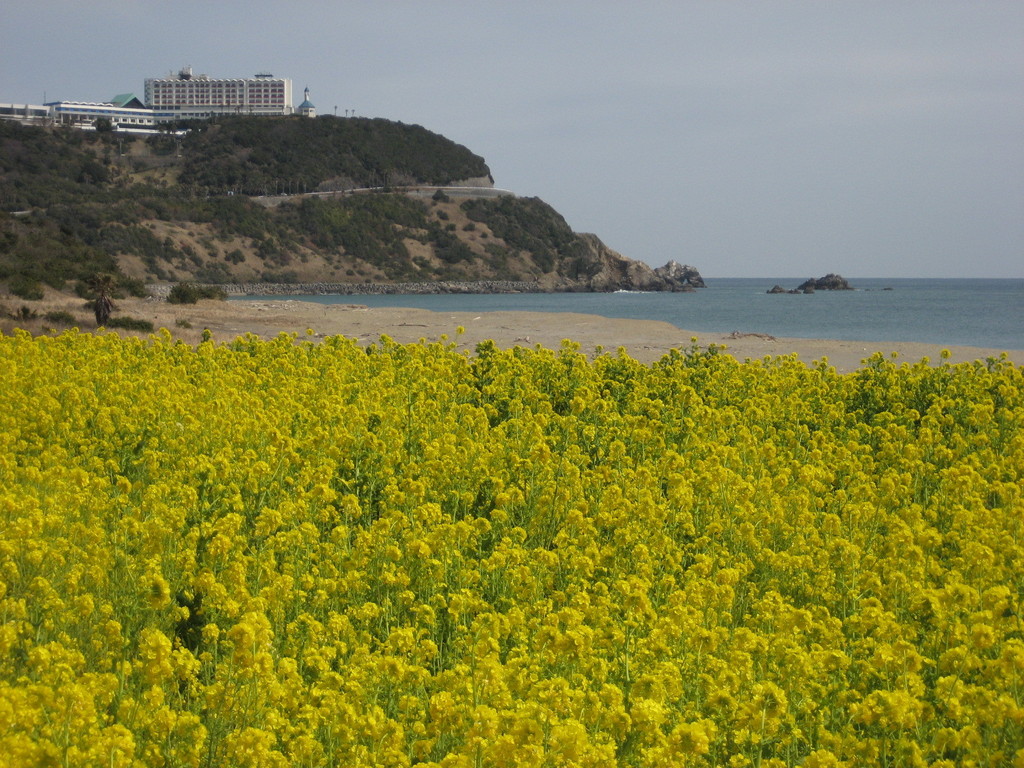 いちめんの菜の花と海、すばらしい景色ですネ!