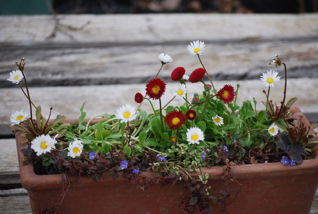 春 最初に作る寄せ植えは寒さに強いデージーで!