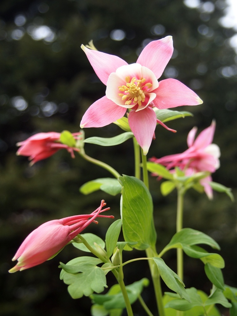 ピンクと白のツートンの西洋オダマキ。