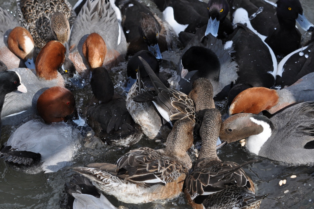 餌めがけて突進するカモ、カモ、カモ!!