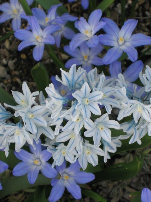 tさん もうすぐ見られる春の共演です。プスキニアの水色がとても美しいです。チオノドクサは、毎年ドンドン殖え花が終わると葉っぱがすっと抜けるので邪魔にならなくて植えっぱなしOKのパーフェクトプランツですね^^