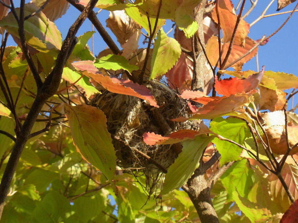 2011年10月の庭。ヤマボウシにヒヨドリが巣をつくりました。
