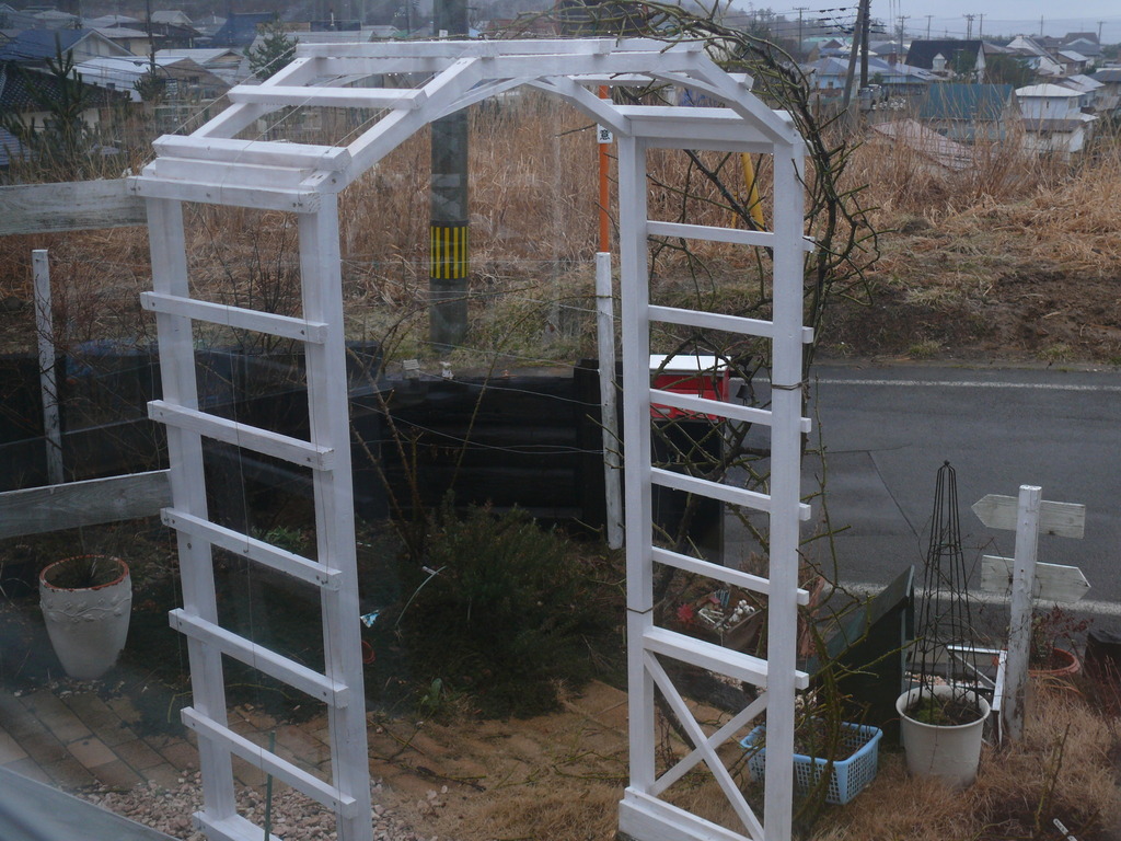 旧アーチ君、ご苦労さまでした。そして、素敵な新アーチが完成したのですね!!新雪がここに絡まっていくのがとても楽しみですね!白×白ですね!!