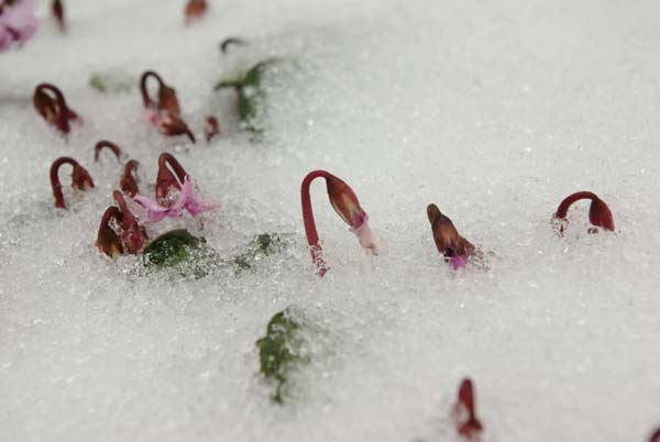 何度拝見しても素敵です。雪の中で凛と花首をもたげて、感動的ですね。