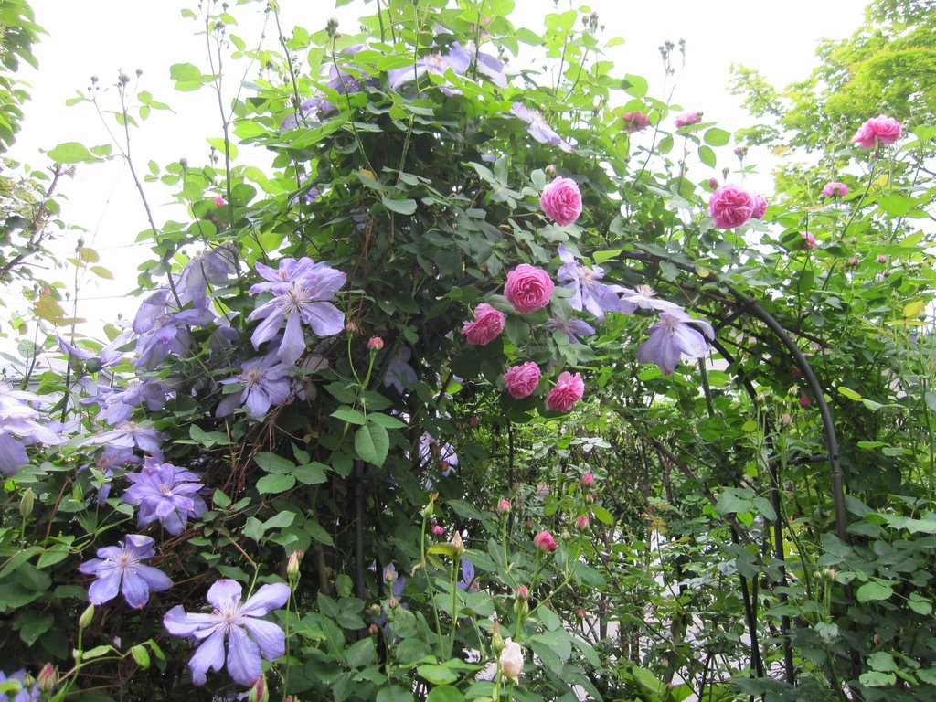 クレマチスのミセス・チムリーとルイーズ・オディエのアーチです。