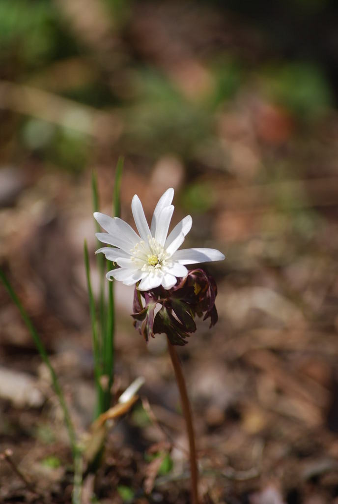 庭の梅が咲くと待ち合わせたかのように咲くアズマイチゲ!今年は一輪だけ?しかも花びらは虫の餌食に・・・