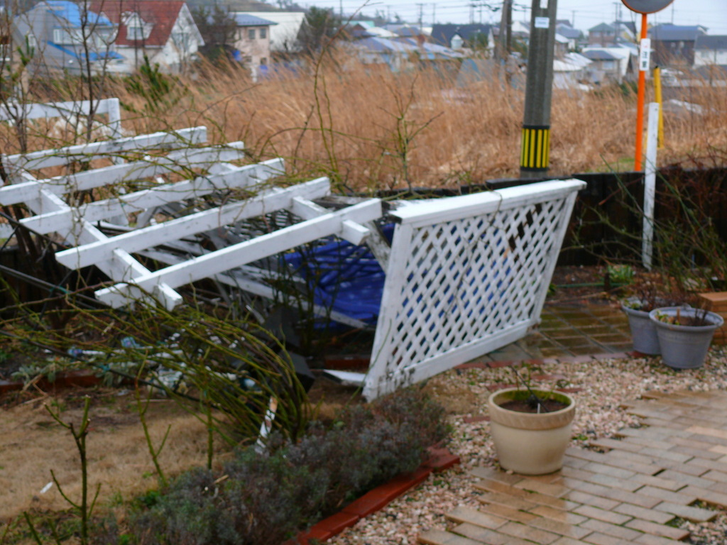 涙・・・TT なんでこんなことに! 倒れたパーゴラや折れ曲がった蔓が痛々しすぎますTT