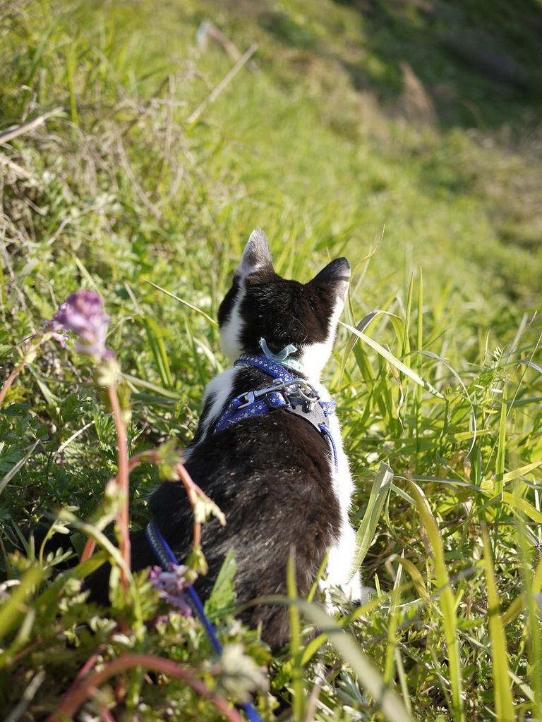 初めてのお散歩おめでとう!(^^)! 抱きしめたいほど可愛い後姿ですね❤ でも抱っこしたら散歩にはならないか・・・