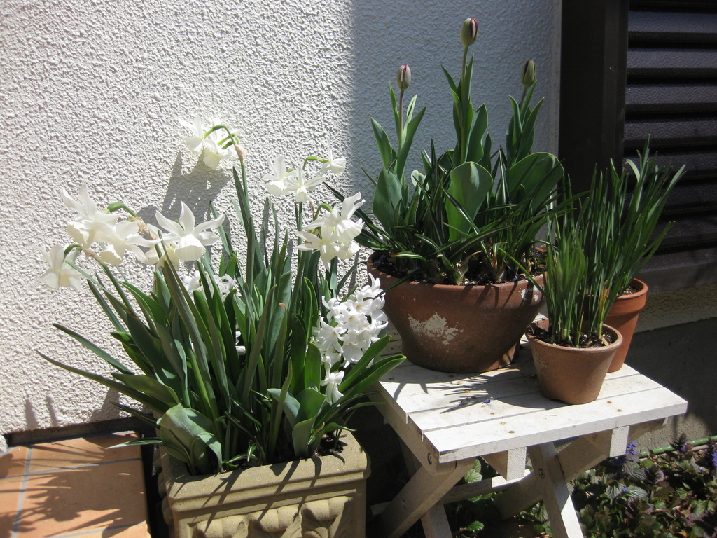 白くて可愛い水仙ですね!チューリップももうすぐ咲きそうで、心ウキウキですね~!