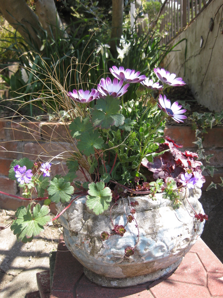 オステを中心にカレックス、ヒュウーケラと素敵な寄せ植えですね。