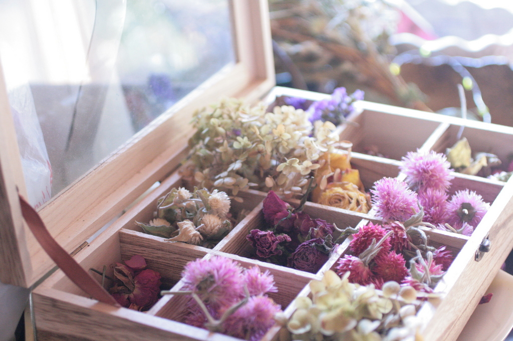 柔らかい色合いがすてきですね。ドライフラワーにすると、またそれぞれの花の個性が表れるのですね。