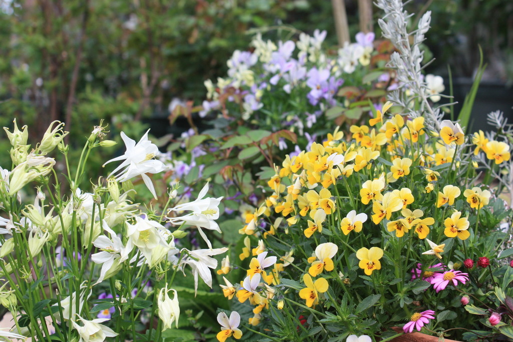 すてきな春の景色ですね~!白のオダマキが清楚でとってもかわいいです(*^^*)