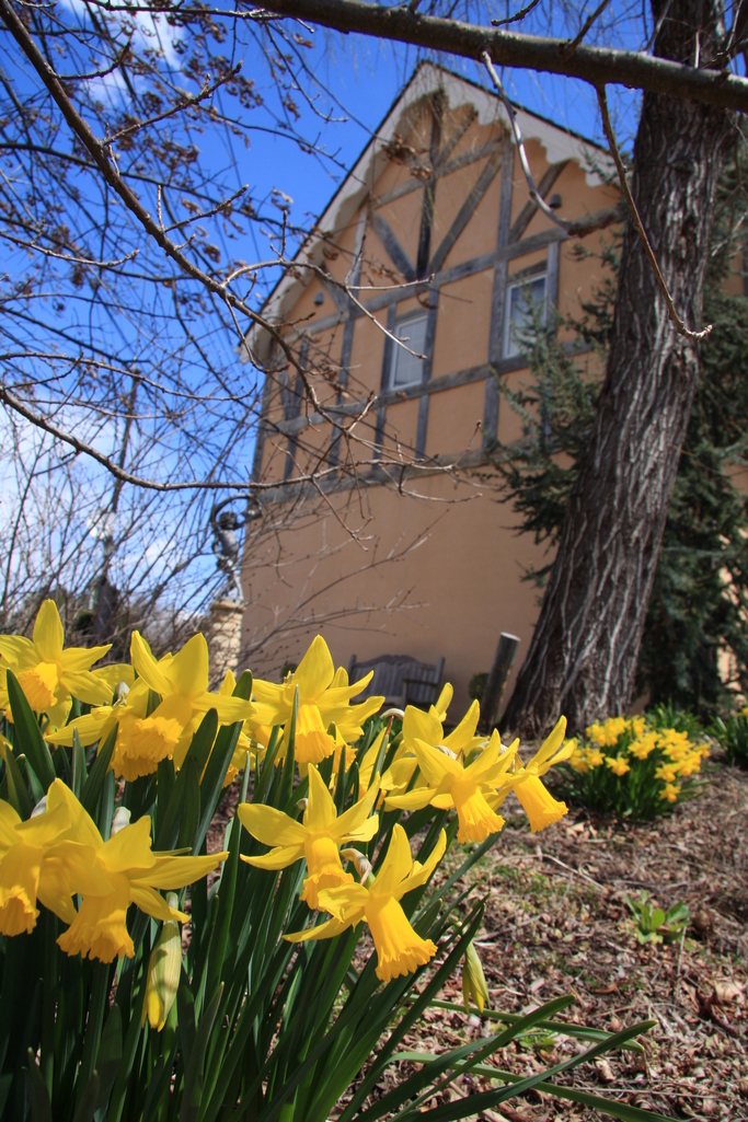 すっきりした青空に、黄色のテータテートのかたまりが、春を感じます。絵になる風景ですね(^。^)