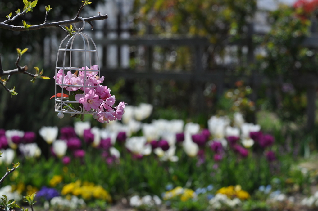 鳥かごにカイドウ一輪・・・・