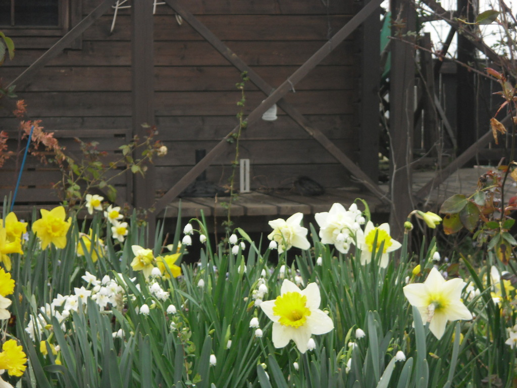 毎年この場所に、いろんな種類のスイセンをランダムに植えてるので、たまに、前に植えた球根をスコップで真っ二つにしてしまう、失敗もあります。(笑)