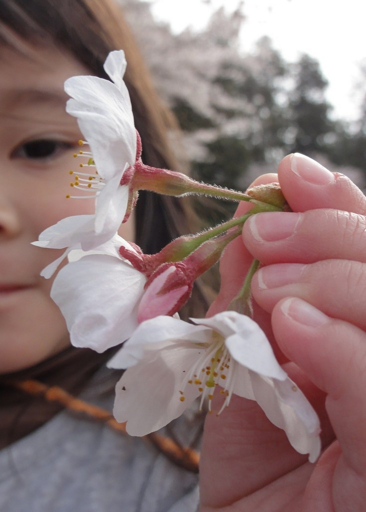 お嬢さんの初めての出会いに☆3つ^^ いいお顔をしてますね。やっぱりママに似て花好きなんですね~(*^^*)