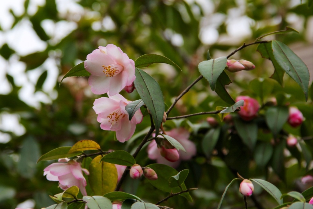 上品なピンクの椿です。小さいので、たくさん咲いてもうるさくない(^^)