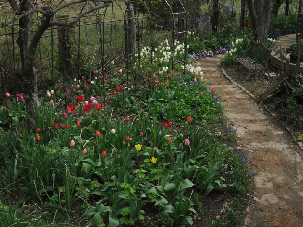 私の誕生日花がチューリップなので、こんなにたくさんのチューリップに囲まれてみたいです。ほんとにステキなお庭ですね!