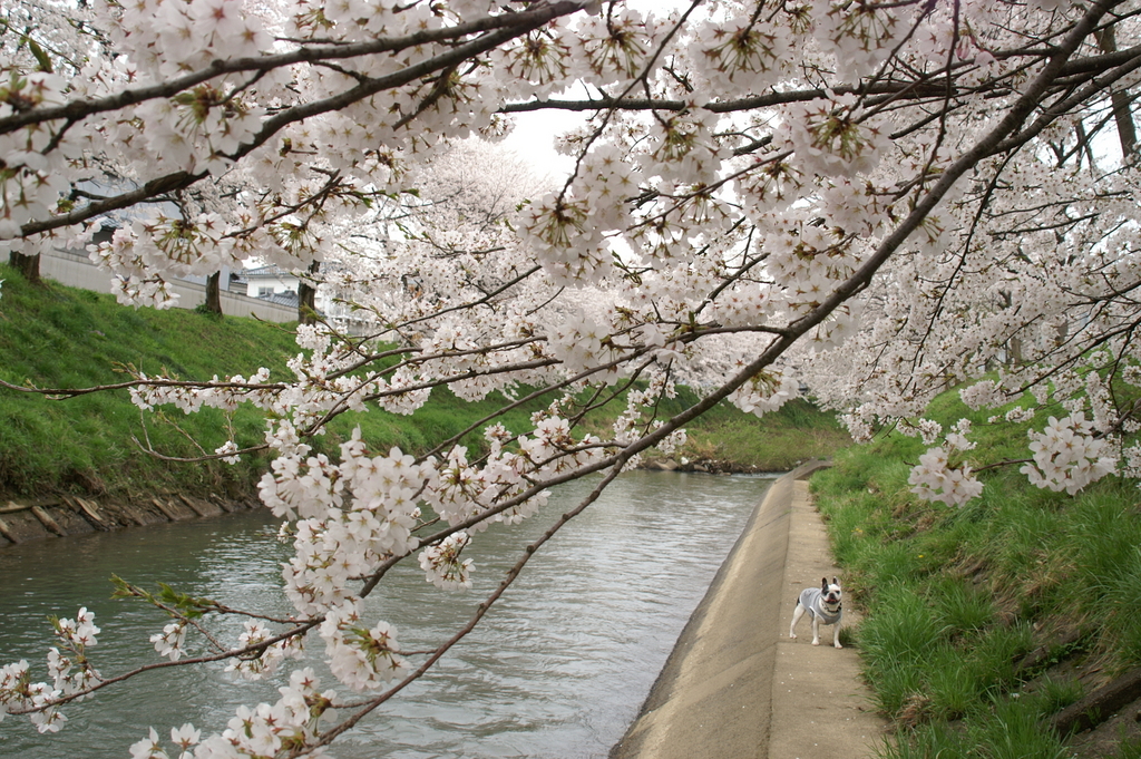 わんちゃんが絶妙な所にいますね(笑)カメラ目線もかわいい〜。微笑ましいお写真です♪
