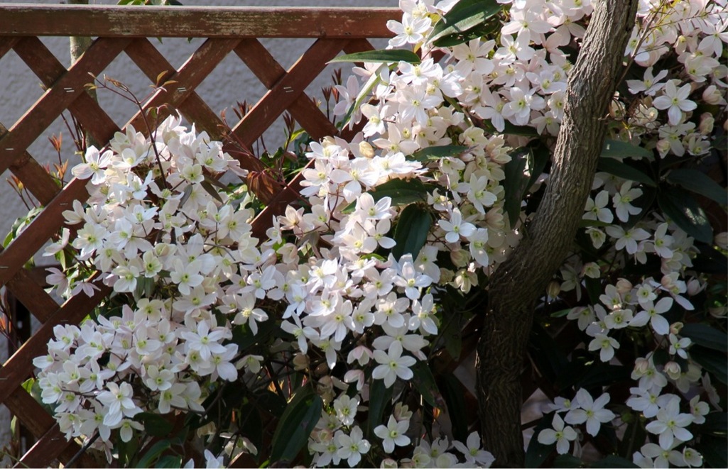 皆さん、アーマンディは、アーマンディ系で、モンタナ系とは、違う系統らしいです。旧枝咲きというところが、一緒なので、モンタナのように夏越しが難しいかなぁと思っていたのですが、モンタナより長生きしています。ツルが、しっかり太くて木質化しているので、また性質が違うようです。ややこしい書き方をして、ごめんなさい(^^;;
