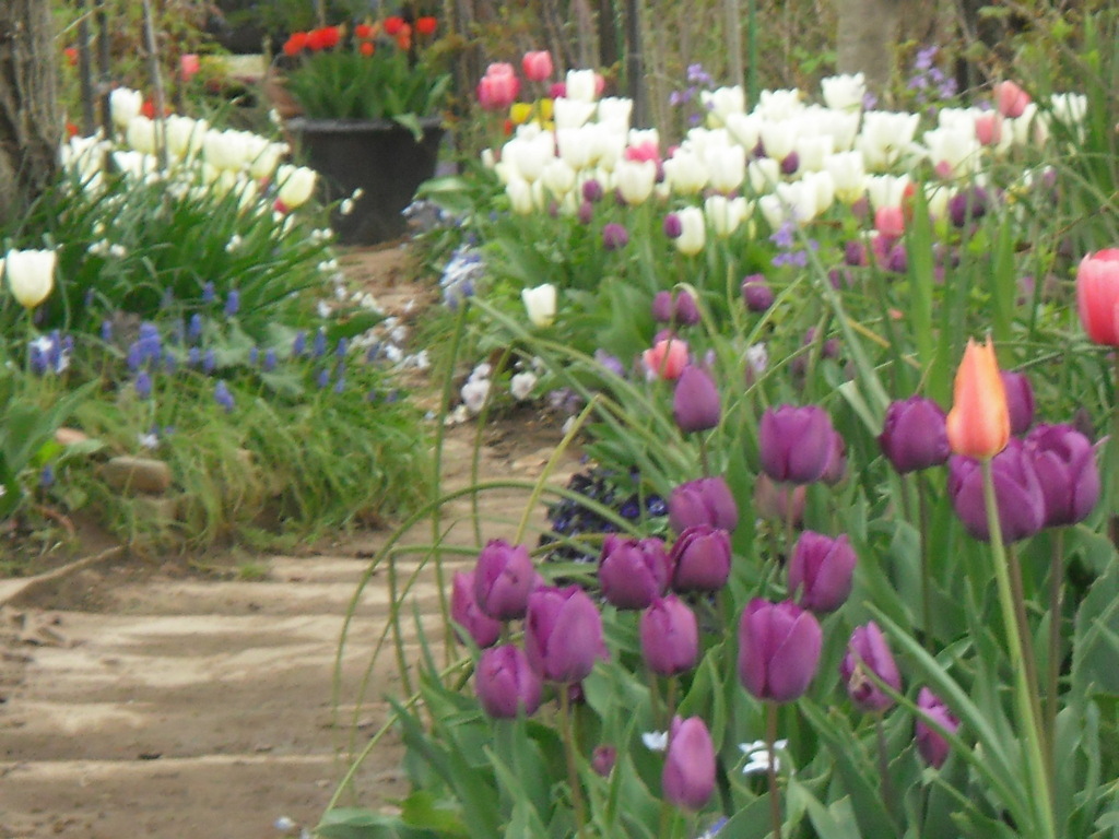 チューリップいっぱいで楽しくなるお庭ですね〜。