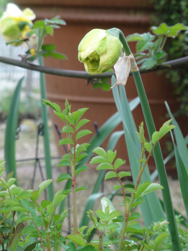 八重咲き水仙“アクロポリス”いったいいつ咲くのだろう・・・と待ちわびていました。