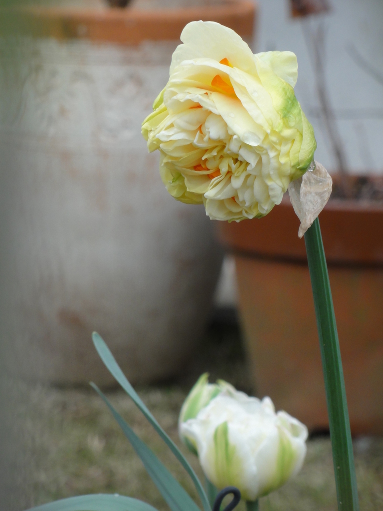 今朝やっと咲き始め、やっと顔を見せてくれました。