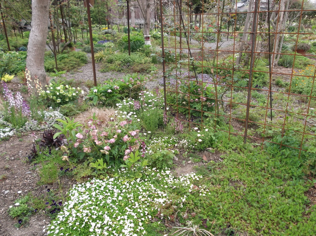地面を覆うサギゴケにクリスマスローズ、春の小花、通るのが楽しくなりますね!私も通ってみたいです!!