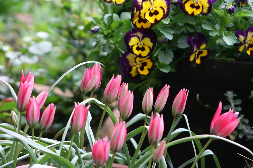 パンジーとくらべてびっくりです。こんな可愛いチューリップがあるんですね。はじめてみました!