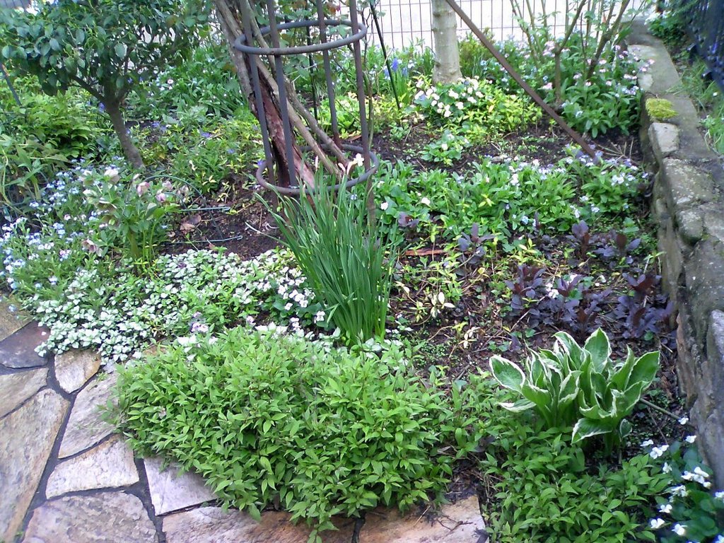 玄関から門扉までのアプローチ横のカバープランツいろいろです。これからもっとうっそうとしてくるのがちょっと悩みです・・・