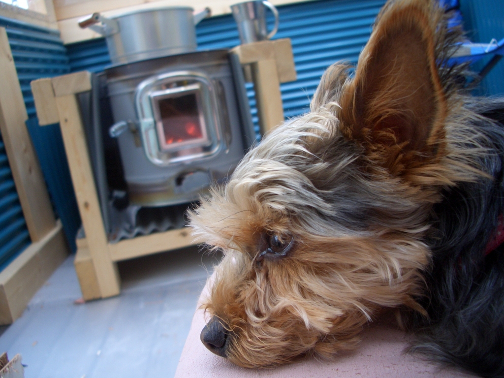 ワンコは一等席を知ってますよネ^^ 火の傍でまったりお昼寝、至福のひと時ですね。