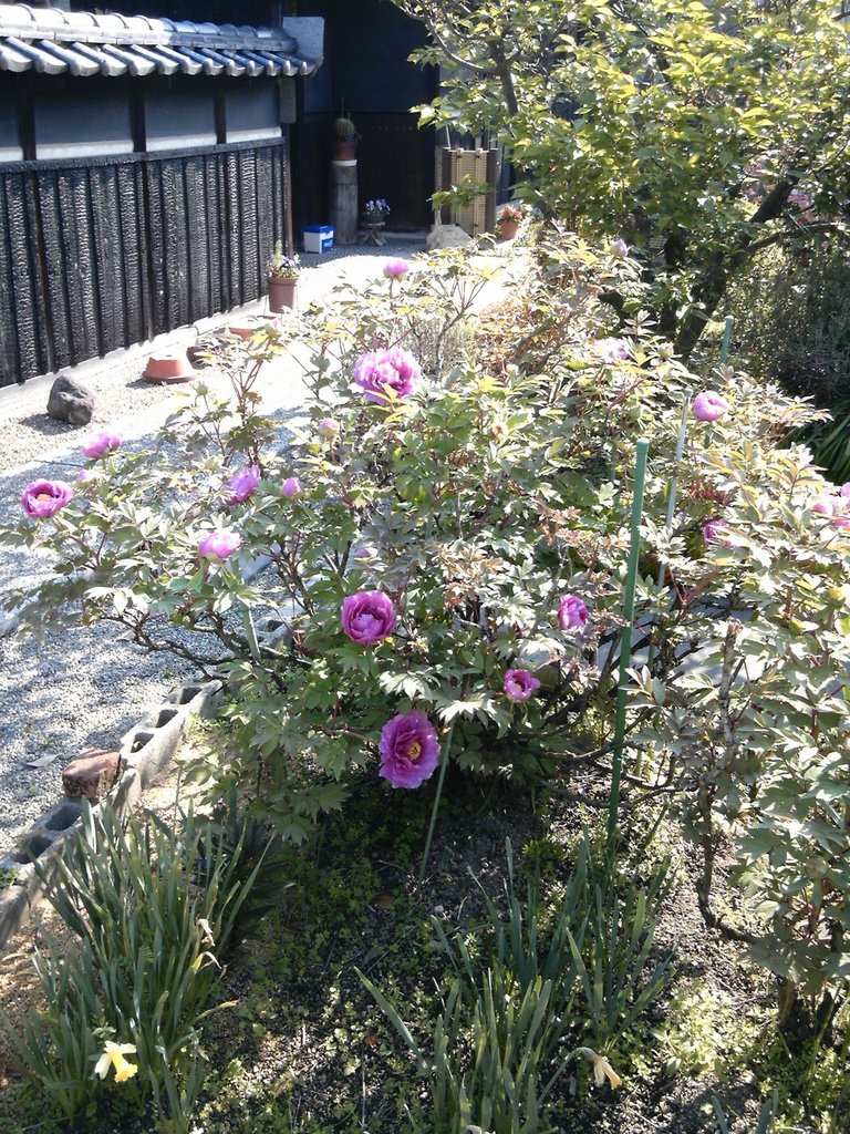 上品で綺麗な色の牡丹ですね~。本当に持って来いの場所に植えられていますね。