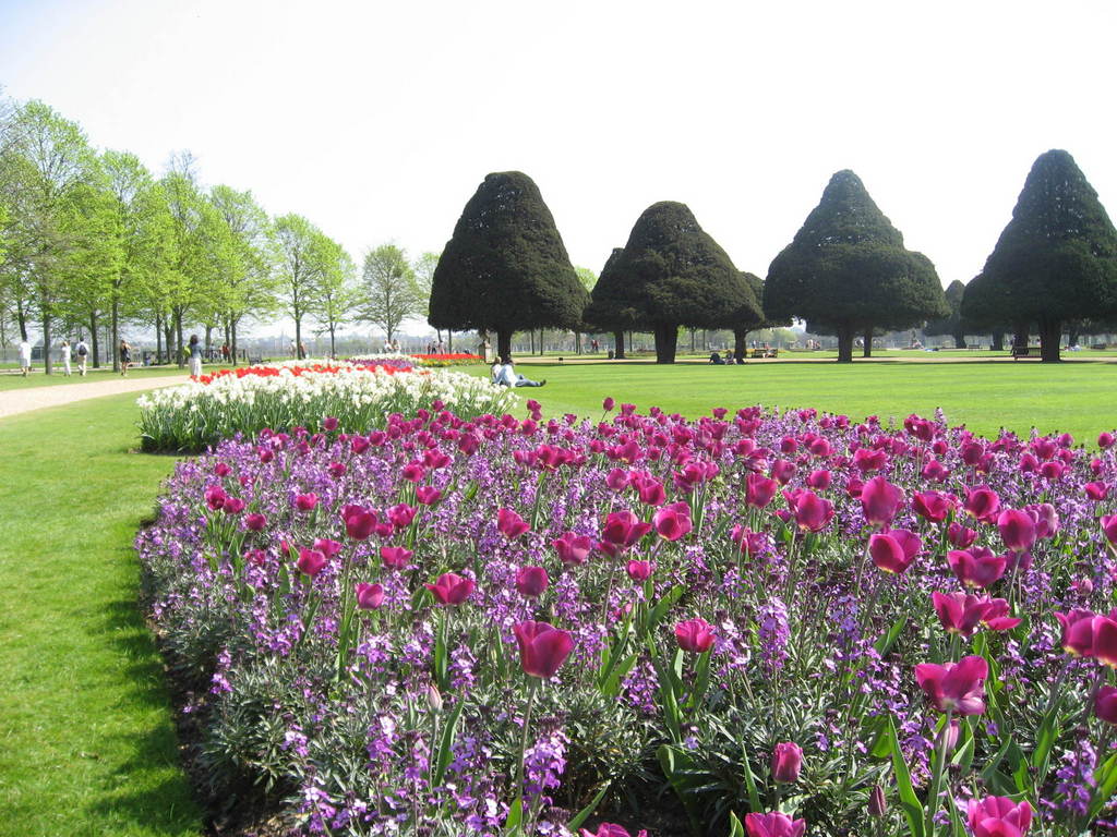 植木の剪定、チューリップの植栽、芝生の刈り込み、
