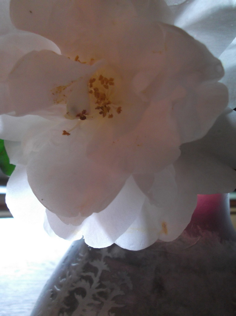 十八年前に一枝頂いた椿。挿し木して今は大きな木に。13cmほどのお花を沢山つけました。