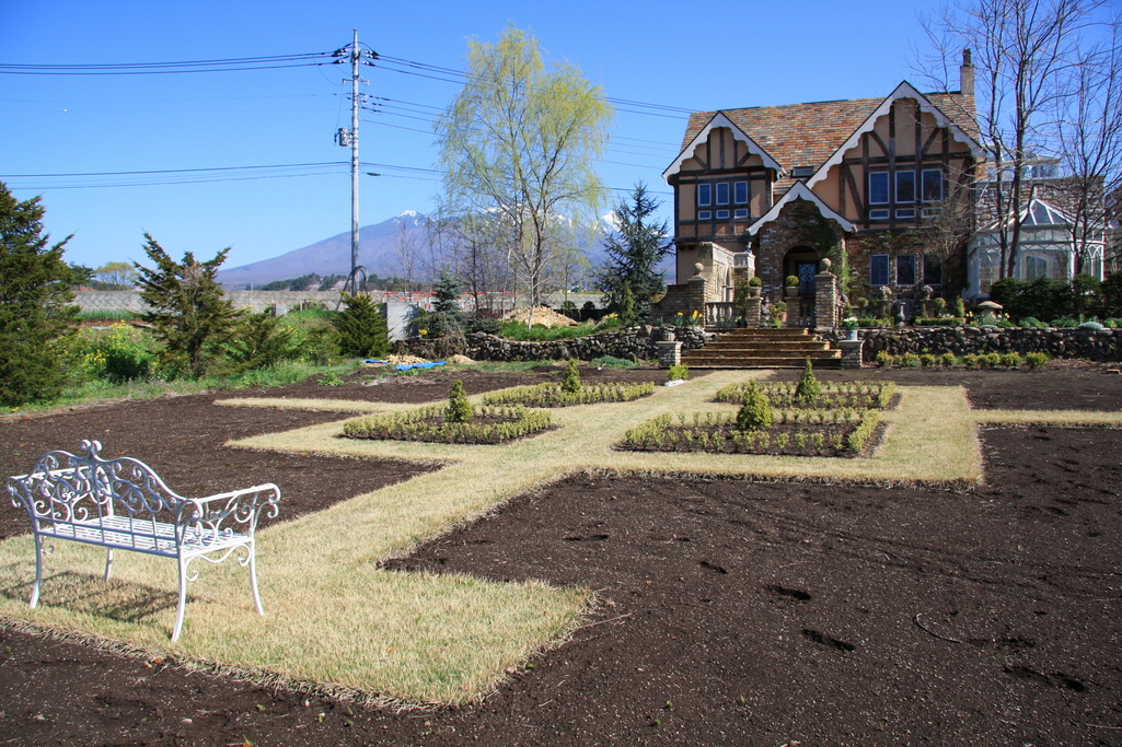 おお~っ!!ここにどんなバラが植わるのか、宿根草は?まさかホワイトガーデン?想像がどんどん膨らみます~(*^^*) それにしても、綺麗に整地されて雑草ひとつないですね。