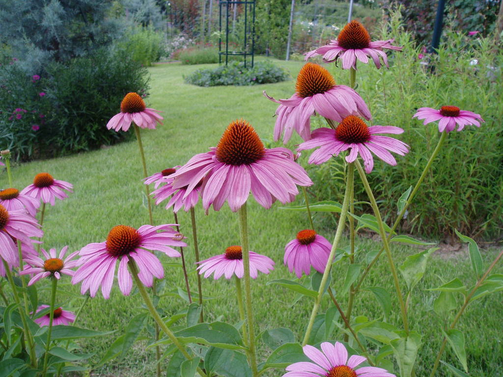 芝の元気な緑とルドベキアのピンク元気をもらえそうな一枚。