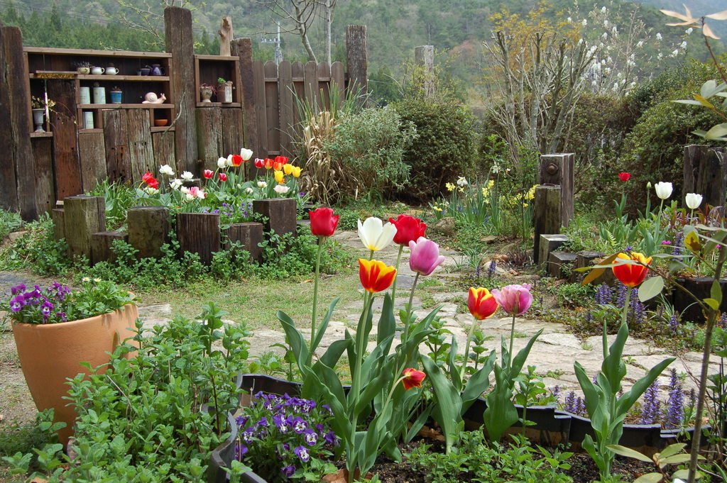 とってもステキなガーデンですね。可愛いチューリップや色とりどりのお花が綺麗にさいていますね。それにしても、鳥がチューリップの球根を食べちゃうなんてビックリ~!