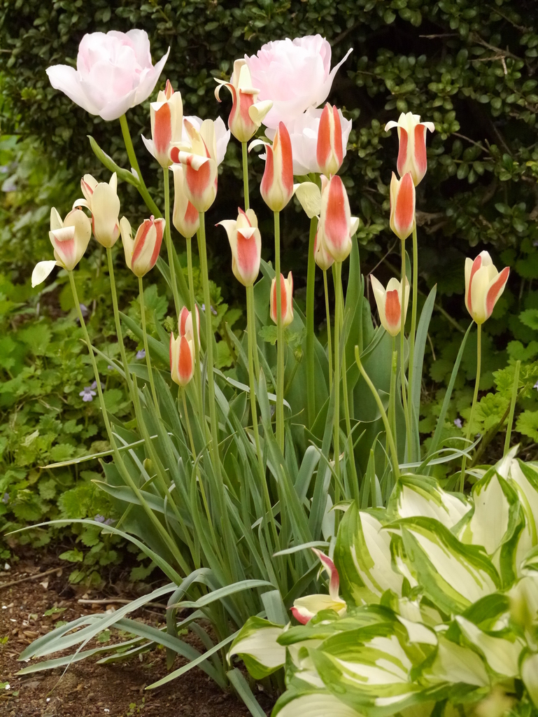 チューリップはレディジェーンとアンジェリケ。ギボウシと組み合わせてかわいらしいコーナーになりました。