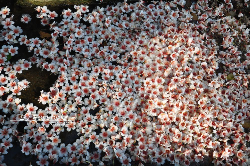 水面に落ちた花、まるで宇宙に広がる星々の様にきらめいていますね。