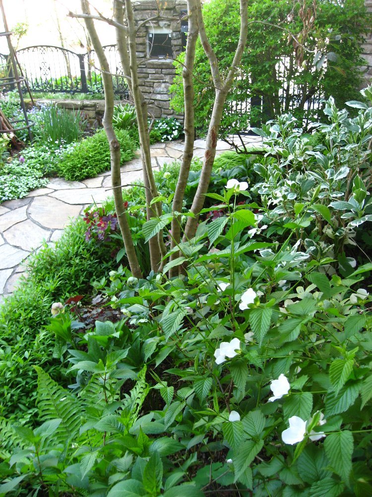 色を抑えた素敵なシェードガーデンですね。