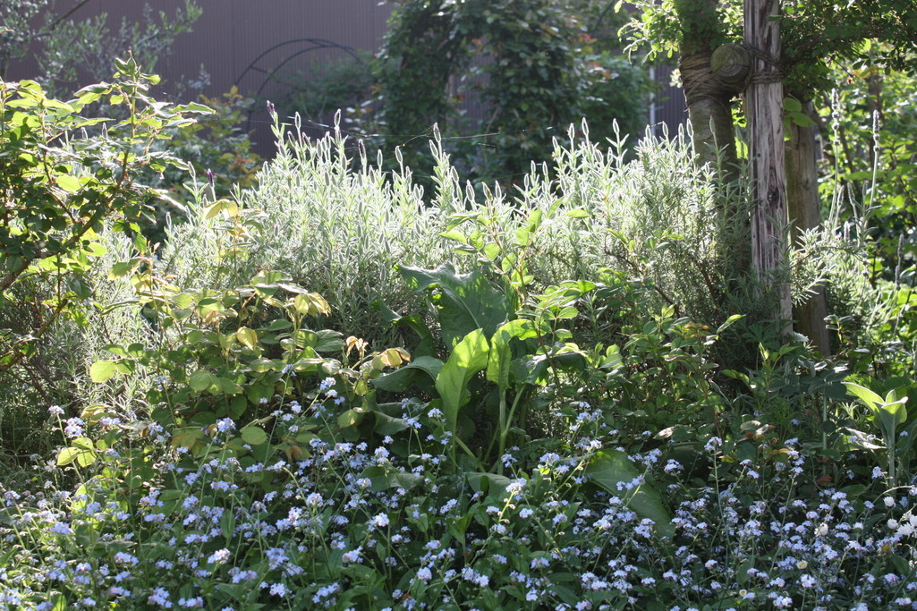 ラベンダーの穂がもうこんなに伸びているのですね!!光が気持ちよさそう。ワスレナソウとのコラボとっても素敵です!!