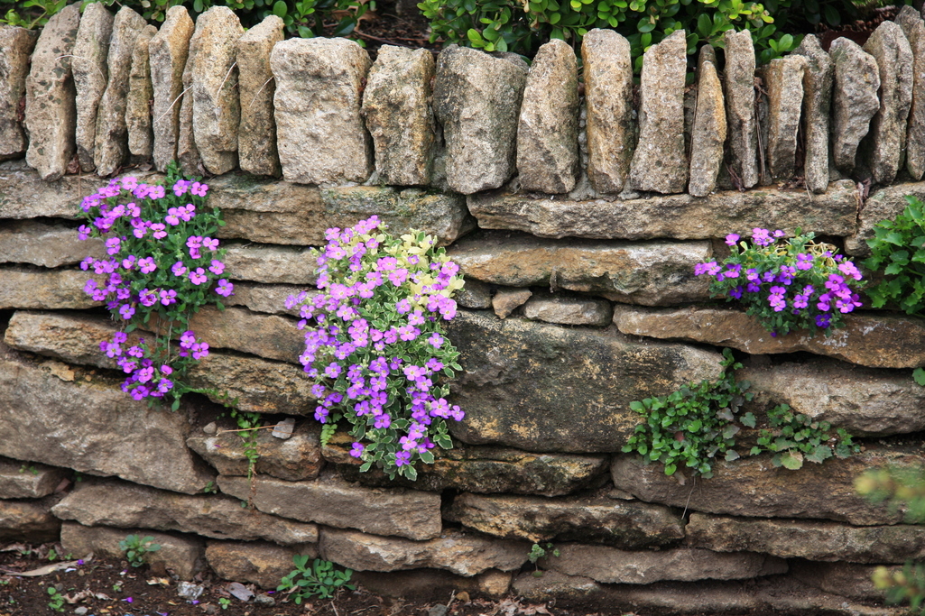 TKさんの植栽はこういうところまで行き届いていますよね~!石壁から垂れる小花、かわいいです♡