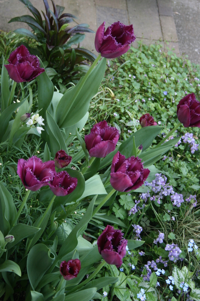 ガレージの脇までお花がいっぱいなんですね!紫のチューリップ、とってもすてきです!!