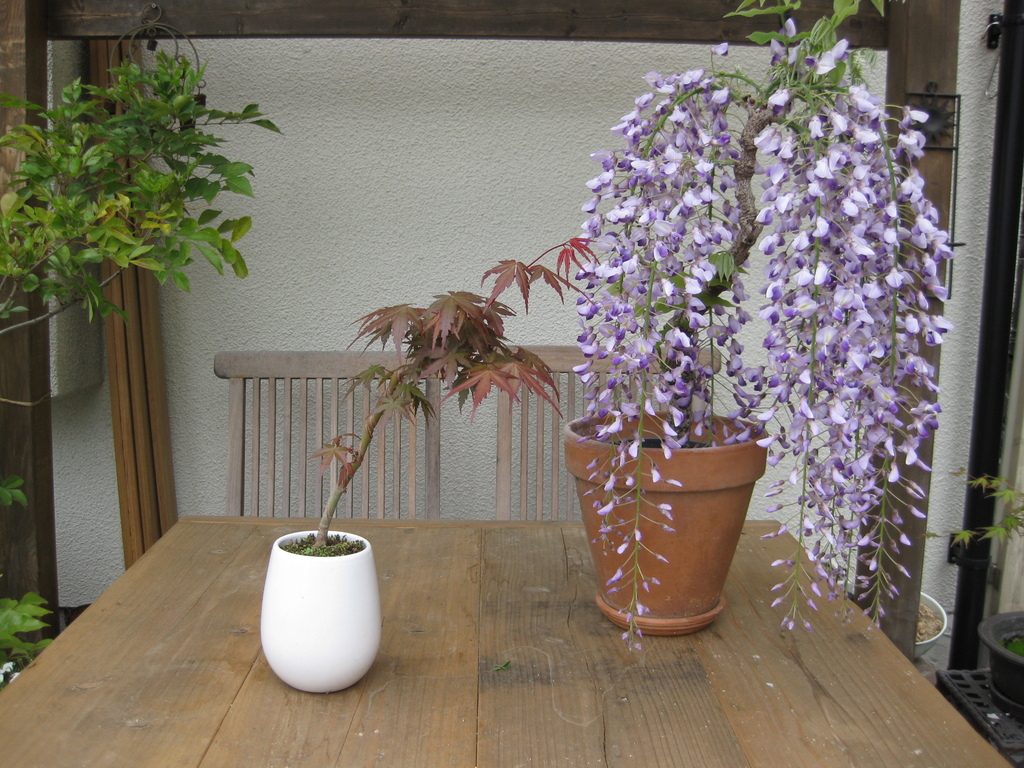 うちの庭のフジも咲きません。たくさん咲いた年もあるのですが、剪定の仕方でしょうか。むずかしいですね。鉢植えで楽しむのも一つの手ですね。