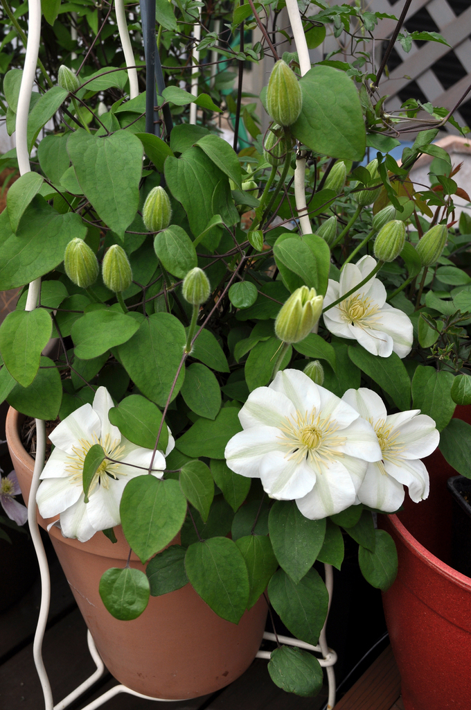 4月中旬にクレマチス・ガンジークリームが咲き出しましたました。まだまだ蕾がたくさんあります。満開になるのも楽しみです。