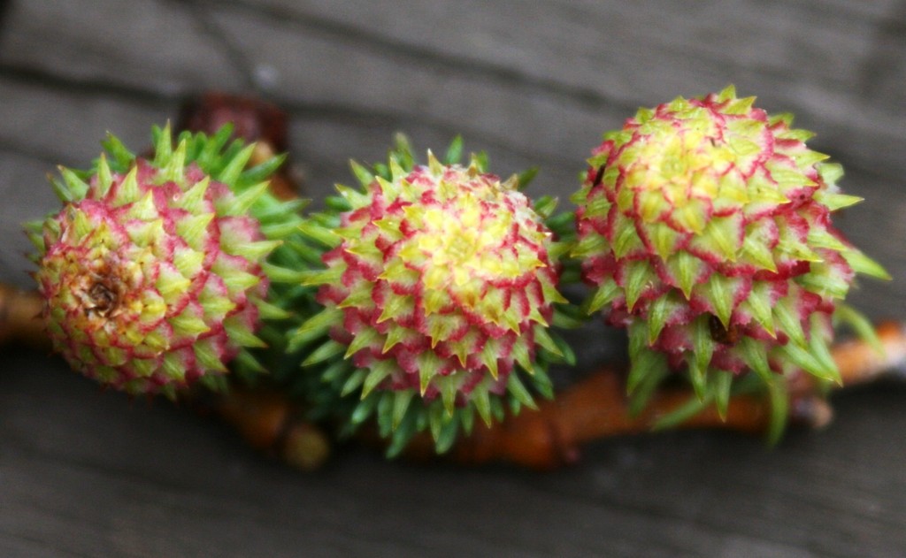 カラマツの花芽ってこんななんですね!初めてみました。鯉のぼりのように華やか立派ですね!