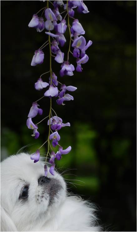 とっても可愛い写真ですね。藤の花の色もよく出ていますね。