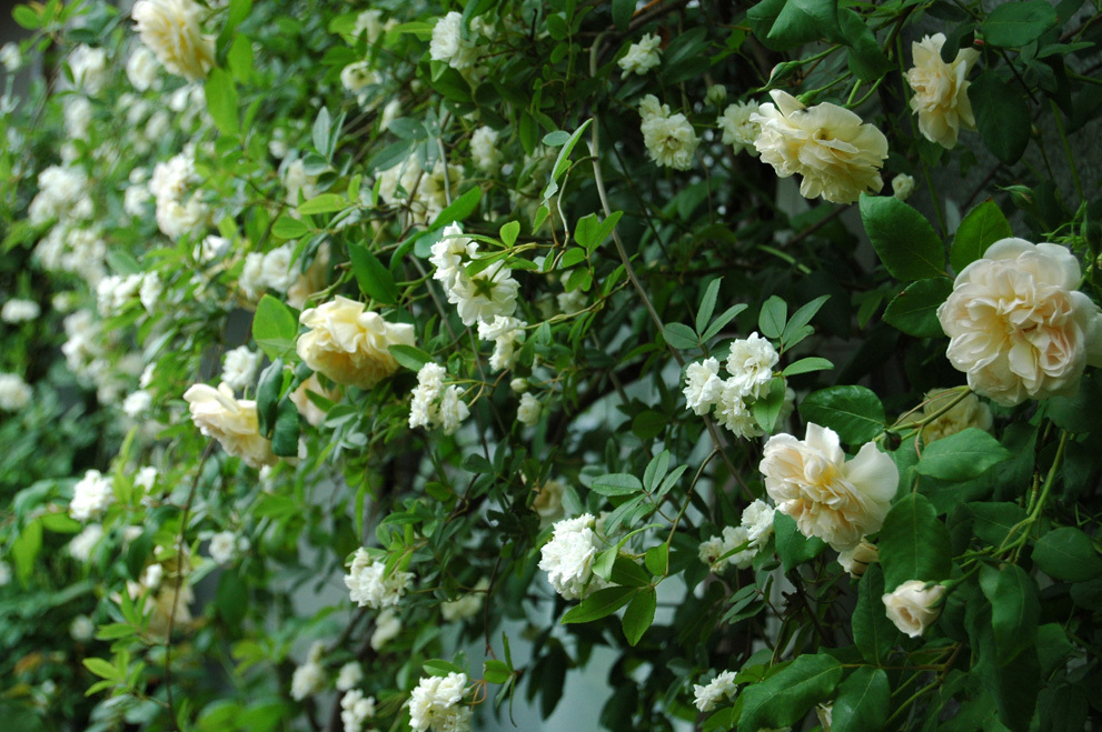 素敵な競演すね!!モッコウ薔薇が咲いている時期に咲いてくれて嬉しいですね!!boisさんはセンスが良いですね!!